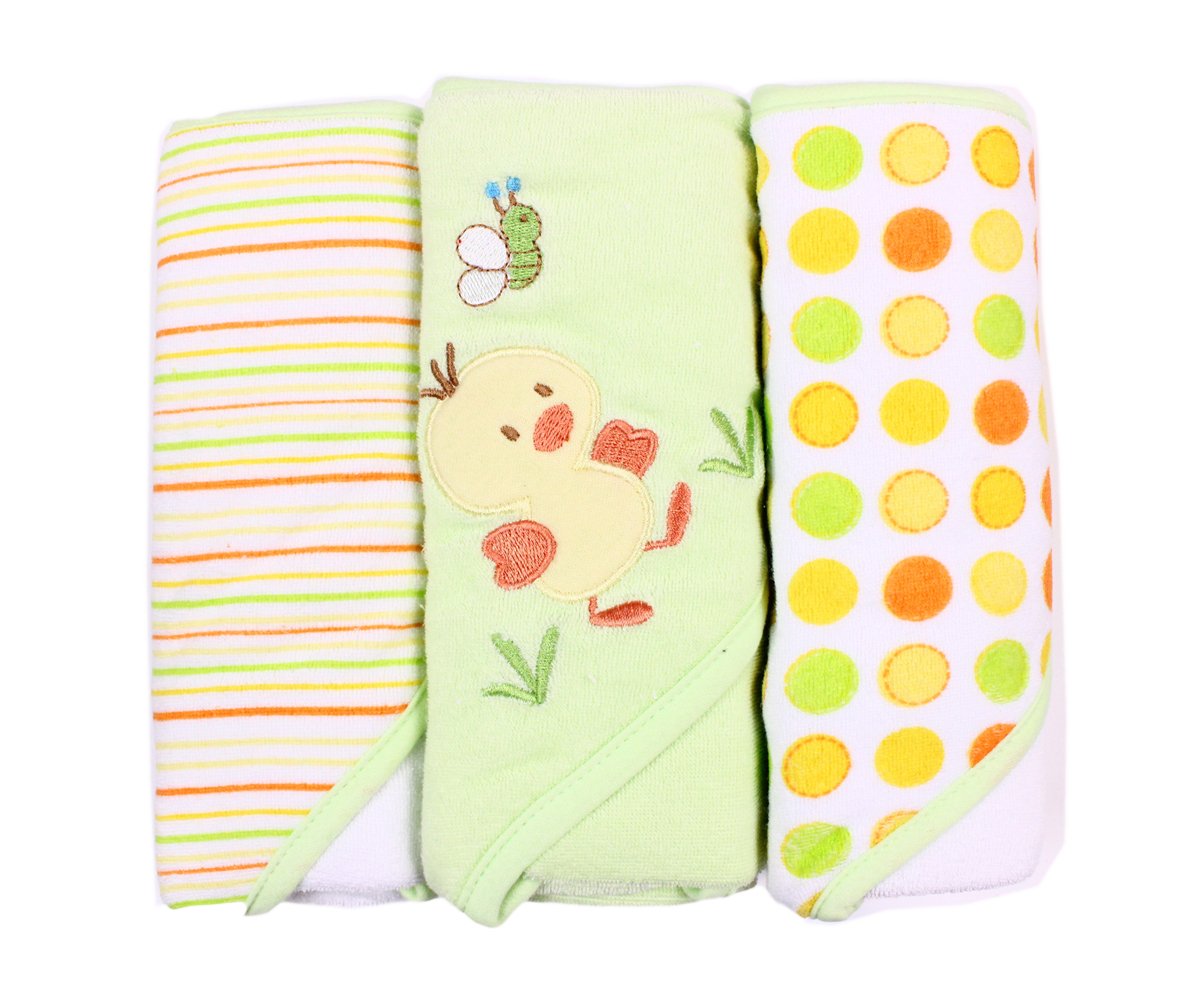 Spasilk Soft Terry Hooded Towel Set, Green Duck, 3-Count